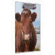 Niedliches Gesicht einer braunen Kuh stehend auf dem burren.
