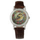 Geben Sie jemandem, den Sie Liebe eine schöne Uhr mit einem braunen Gurt und Buntglas Weihnachtsvogel Gesicht. Das kann eine Herren- oder Frauenuhr sein und ist in vielen Stilen erhältlich.