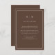 These elegant, modern wedding guest detail cards feature a simple rustic brown minimalist text design with your initials or monogram and a classic warm, creamy white frame. You can use these cards for driving directions, reception or transportation information, hotel or accommodations information, and any other wedding details you need your guests to know.