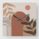 Brown Modern Boho Abstract Botanical Square Clock Quadratische Wanduhr