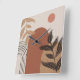 Brown Modern Boho Abstract Botanical Square Wall Clock.