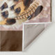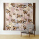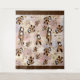 Ein Traum-Catcher-Design mit goldbraunen Zierleisten, die ein rundes Bambuskreisnetz mit braunen Federn und roten Perlen auf einem weichen Federhintergrund für die Neugeborenen beinhalten