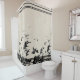 Die schönen Brown-Pelikan-Vögel, die am Strand, digitale Silhouettekunst in Massen fliegen von der Fotografie, auf einem Imitat-Leinengewebehintergrund entfernen, sind auf diesem Streifen-Duschvorhang.
