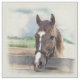 Ein Kastanienbraunpferd mit einem weißen Streifen auf seinem Gesicht ist in der Koppel gesehenes stehendes. Das Bild hat eine weiche und träumerische Qualität zu ihm. Fertigen Sie besonders an, indem Sie einen Titel, einen Namen oder ein Monogramm addieren.