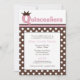 Kühne und stilvolle Einladungen aus Quinceañera mit weißen Polka-Punkten über Braun auf beiden Seiten und einer Krone über dem rosa "Q" in "Quinceañera".