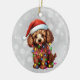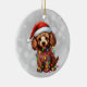 Brown Poodle in Weihnachts-Lichtern umwickelt Keramik Ornament