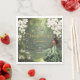 Personalize this enchanting Princess and the Frog Quinceanera / Sweet 16 birthday paper napkins easily and quickly. Simply click the Edit Using Design Tools button to further edit the text, change font styles and font colors. Featuring a brown girl dressed in a sage green dress, a frog prince, beautiful trailing white floral and an enchanted forest and pond background. The princess, crown, little butterflies and frog are movable, resizable, multipliable and removable. Customize it to suit your occasion. For a seamless and coordinated look, explore our range of matching items available in-store. (c) Somerset Fine Paperie.