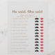 Dieses braune er sagte, sie sagte, Brautparty-Spiel ist perfekt für ein klassisches Brautparty. Das Design besticht durch einen schönen Schriftart in braunem Hintergrund, der Ihre Veranstaltung verzieren wird.