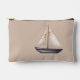 Brown Sailing Boat and Name on Beige Zubehörtasche