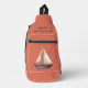 Brown Sailing Boat and Name on Red Crossbody Bag