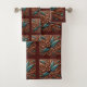 Brown Tooled Faux Leather and Teal Feathers Badhandtuch Set