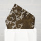 Dieses empfindliche weiße Damastmuster hat einen braunen Hintergrund.