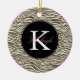 Brown Zebra Print Gold Confetti Monogram Keramik Ornament