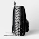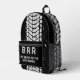 Mit diesem Back Road Rides in grauer Schrift und schwarzem Backpack bereiten Sie sich auf das neue Schuljahr vor. "Life Begins on the Back Roads" Slogan in grauer Schrift mit grauem Schlammreifen.