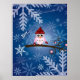 Brrr...Schneeflocken-Design mit einer zauberhaften rosa Eule, die auf einem dekorierten Baumstamm steht.