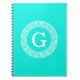 Brt Aqua Wht Griechisch Key Rnd Frame Initial Mono Notizblock