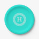 Brt Aqua Wht Griechisch Key Rnd Frame Initial Mono Pappteller