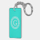 Brt Aqua Wht Griechisch Key Rnd Frame Initial Mono Schlüsselanhänger