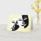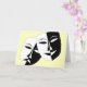 Eine Comedy- und Tragödie-Maske schmückt die Vorderseite dieser Grußkarte, während innen steht: "Break a leg", die traditionelle Art, mit einem Schauspieler zu sprechen, "Viel Glück"
