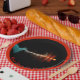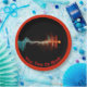 Eine blaue und rote Fraktal Interpretation des Physikbegriffs der Teilchenwellendyalität. Fügen Sie Ihren eigenen Text hinzu.