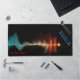 Eine blaue und rote Fraktal-Interpretation des Physikbegriffs der Teilchenwellendyalität. Hier wird die Welle zu einem Teilchen. Fügen Sie Ihren eigenen Text hinzu.