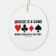 Wenn Sie das Spiel der Brücke oder Duplikatbrücke spielen, dann können Sie, wichtig sie, sich mit Ihrem Brückenpartner zu verständigen ist. Stellen Sie Ihre wry doppelte Brückenhaltung mit irgendwelchen Geschenken zur Schau, welche die vier Karten-Anzüge zusammen mit dem Gemeinplatz-Sprichwort "Brücke kennzeichnen, ist ein Spiel, in dem Kommunikation Schlüssel ist". Denkwürdige Geschenke für alle Bridge-Spieler!