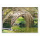 Eine Brücke mit Baumzweigen, die über sie und den See unter der Brücke hängt.