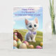 Frohe Ostern für einen wunderbaren Bruder und seine Ehefrau, oder deine Schwester im Jura. Ein mit Augen Kätzchen mit süßer Gesichtslage mit einem Eierkorb und personalisiertem Text. Niedlich und bunt.