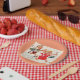 Bruder und Schwester auf ihrer Weise zur Schule Pappteller