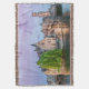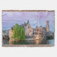 Malerei der Brügger Altstadt und des Belfry Turms mit rosa Himmel bei Sonnenuntergang, Brügge, Belgien.