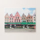 Spazieren Sie durch die Straßen von Brügge in Belgien, und Sie kommen zum Marktplatz, wo Cafés zum Essen und Leute beobachten, genießen Sie die Montage dieses Puzzles, das die farbenfrohen Fassaden einfangen.