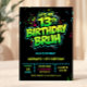 Bruh 13th Birthday Boy Neon Modern Invitation Einladung