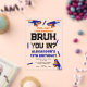 A teen boys "Bruh" dart gun battle themed birthday invitation using cool typography. A custom kids black and white "pizza, cake and dart gun battle" teenage boys birthday invitation design perfect for any teens birthday party theme. Customize this "Bruh" birthday invitation with your own text and make it your own!