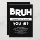 Es überrascht nicht, dass die Planung eines Party für Ihren jugendlichen Sohn eine gewaltige Aufgabe sein kann. Von der Suche nach dem perfekten Veranstaltungsort bis hin zum Versenden der Einladungen gibt es so viele Dinge zu bedenken. Wenn es um Einladungen geht, wird eine generische Einladung für einen besonderen Tag wie seinen Geburtstag einfach nicht reichen. Du will etwas, das einzigartig ist und mit der Persönlichkeit deines Sohnes spricht. Deshalb sind diese BRUH Teenage Birthday Invitations die perfekte Lösung. Diese hochwertigen Einladungen sind mit Blick auf die Jugend konzipiert und zeichnen sich durch moderne Designs aus, die Stil und Geist der heutigen Jugend perfekt einfangen. Von sportlichen Designs über lebendige Farben bis hin zu lustigen Emojis - es gibt etwas für jeden Jugendstil. Und sie sind nicht nur zum Geburtstag - BRUH bietet auch Einladungen für andere besondere Teenager-Anlässe wie Abschlüsse und Teenager-Party. Wenn es also darum geht, das perfekte Party für Ihren jugendlichen Sohn zu planen, sind BRUH Teenage Birthday Invitations der perfekte Ausgangspunkt. Mit ihren modernen Designs, und Erschwinglichkeit und Download-Option.