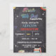 Vorschule Kindergarten Klasse Chalkboard Grad Invitation mit lustigen Grafiken oder Designs, die für kleine Kinder geeignet sind dekoriert. Zu den gemeinsamen Themen zählen farbenfrohe