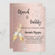 Ein modernes, stilvolles und glamouröses Brautparty für einen Bubbly Brunch. Eine Rose goldener Farbverlauf mit Blasen, ein Paar Flöten, Gläser. Der Name ist mit einem modernen handgeschriebenen Stilskript geschrieben. Personalisieren Sie Ihre Party-Daten und fügen Sie sie hinzu.