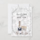 Eine elegante Brunch & Bubbly Dusche Einladung für die Braut zu sein. Eine Flasche Champagner und Weingläser mit Bändern, die leicht über einem Diamantenrahmen von Imitaten sitzen.