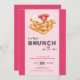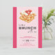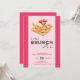 Bringen Sie die Retro-lustige Vibes zu Ihrem Geburtstagsbrunch! Einfach mit Ihren Party-Details anpassen. Mit einem rosa Hintergrund und einer niedlichen Grafik mit Erdbeeren und Creme Waffeln. Die Überschrift lautet "Come brunch with me".