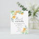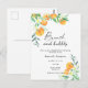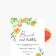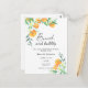 Party zum Thema Wasserfarbenzitrus Brautparty mit Aquarellbildern von Orangen auf einem Baumzweig. Elegante Kalligraphie-Handschrift, ideal für Frühjahr-, Sommer- oder Herbsthochzeiten. Matching-Elemente verfügbar.
