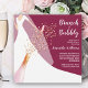 Brunch und Brause-Brause mit einer Braut in ihrem Kleid und Schleier auf einem kranberrten Hintergrund mit einer Flasche Sekt, Glasflöte und Imitat-Sequins mit ihren Details in schicken weißen Schriftzeichen. **TIPP: Die Größe des Quadrats erfordert ein zusätzliches POSTAGE. PASSENDE Artikel in unserer Sammlung.