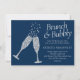 Brunch und Bubbly | Navy Blue Silver Gray Dusche Einladung