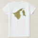 Die Vorderseite dieses T - Shirt zeigt mutig die Bruneische Fahne mit ihrem markanten roten Motiv über weiße und schwarze Diagonalen auf gelbem Hintergrund. Hinter dem Bild befindet sich eine attraktive Karte von Brunei.
