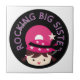 Brünett Rocking Big Sister T - Shirt, Hoodies, Taschen, Magnete, Schlüsselketten, Mousepads, Karten, Sticker, Schlüsselketten, und viele andere coole Rockstar Rocking Big Sister Bekleidung und Geschenkartikel mit einem braunen Haarbär Mädchen in Schädelkappe und Plattenalbum!