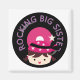 Brünett Rocking Big Sister T - Shirt, Hoodies, Taschen, Magnete, Schlüsselketten, Mousepads, Karten, Sticker, Schlüsselketten, und viele andere coole Rockstar Rocking Big Sister Bekleidung und Geschenkartikel mit einem braunen Haarbär Mädchen in Schädelkappe und Plattenalbum!