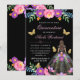 Brünette Frau im mexikanischen Blumenkleid Quincea Einladung