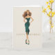 Brunette in Elegant Dark Teal Dress Fashion BDay Karte