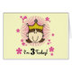 Brünette Prinzessin mit Kronen und hübschen rosa Blume 3. Geburtstagsdesign an T - Shirt, Tasse, Magneten, Totentaschen, Karten, Aufkleber und mehr.