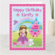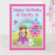Brünette Prinzessin mit Burg & Regenbogengeburt Karte