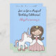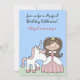 Niedliche Prinzessin mit braunem Haar und Einhorn zum Geburtstag Einladung für Mädchen