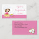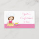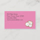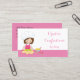 Eine süße Visitenkarte für ein Bäckerei- oder Zuhausebäckereigeschäft. Die Ausrüstungsbeschreibungen ein brünettes Mädchen mit Kochshut-Rollenteig mit einem Rollen-Button. Backen Geräte auf der rosa Grenze. Die Rückseite ist mit bunten verzierten Plätzchen als Akzent rosa. Grafiken durch etsy.com/shop/Prettygrafikdesign.